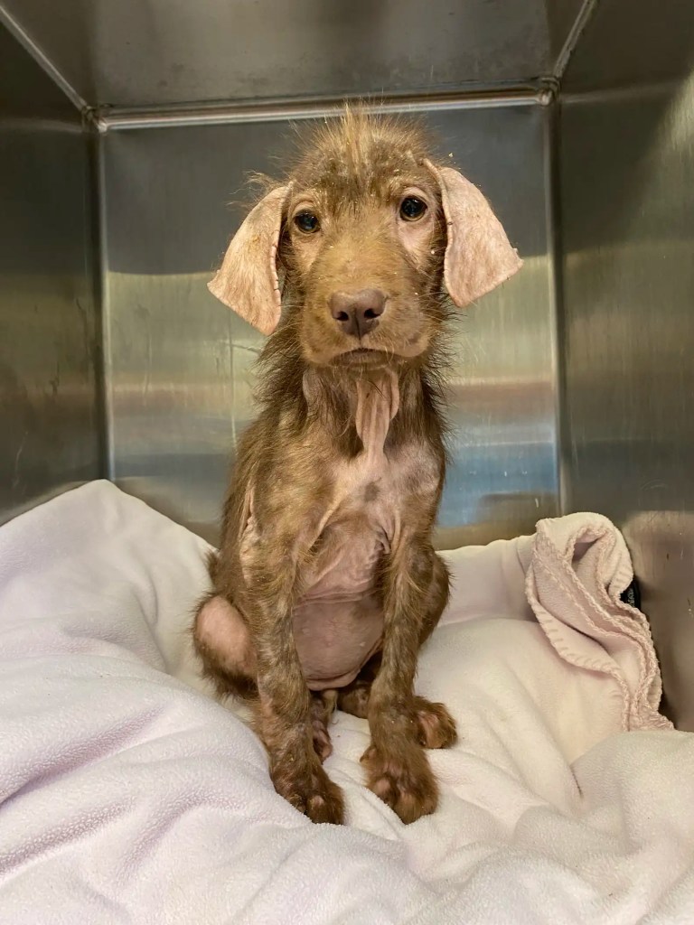 Običajno ni dobro, ko ima pes parvo. Vendar je Gospa Greg nekako preživela. Žal trajalo dlje časa, da se je popolnoma pozdravila, in iz neznanega razloga njena dlaka ni rasla nazaj. Skrbniki so se bali, da bi to lahko preprečilo, da bi jo kdo posvojil – a na srečo jo je ena oseba videla takšno, kot v resnici je.